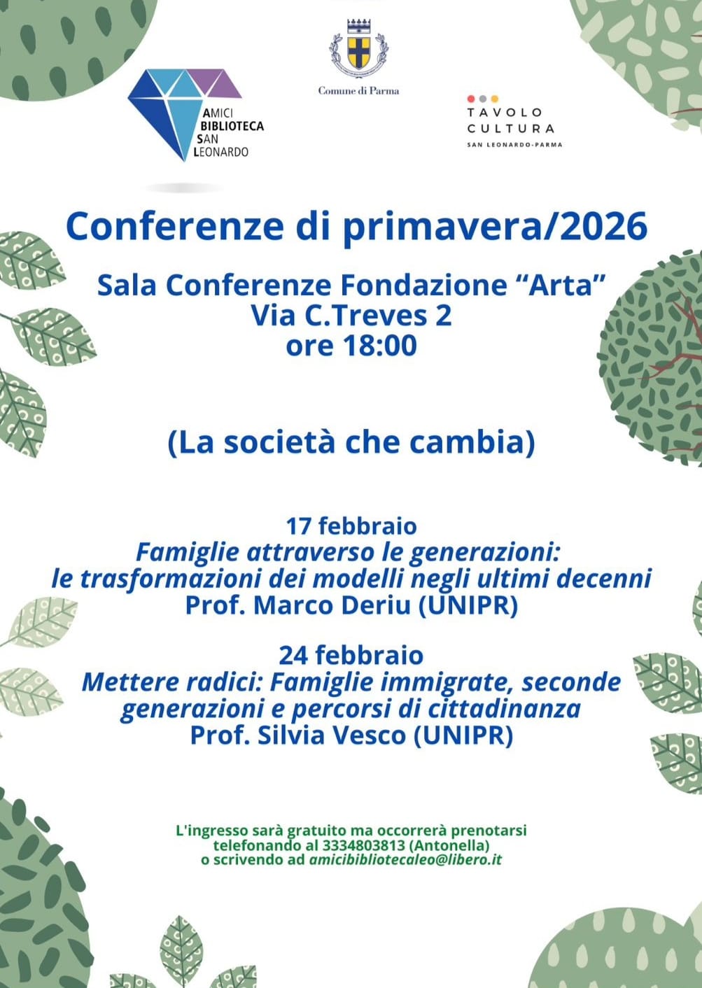 L'ingresso è gratuito, ma occorre prenotarsi telefonando al 333 4803813 (Antonella) o scrivendo ad amicibibliotecaleo@libero.it